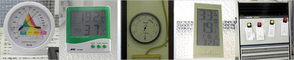 4個の湿度計と除湿機で湿度管理