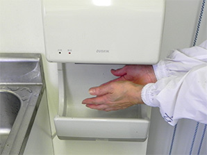2.石鹸で手洗いしエアータオル後、アルコール除菌